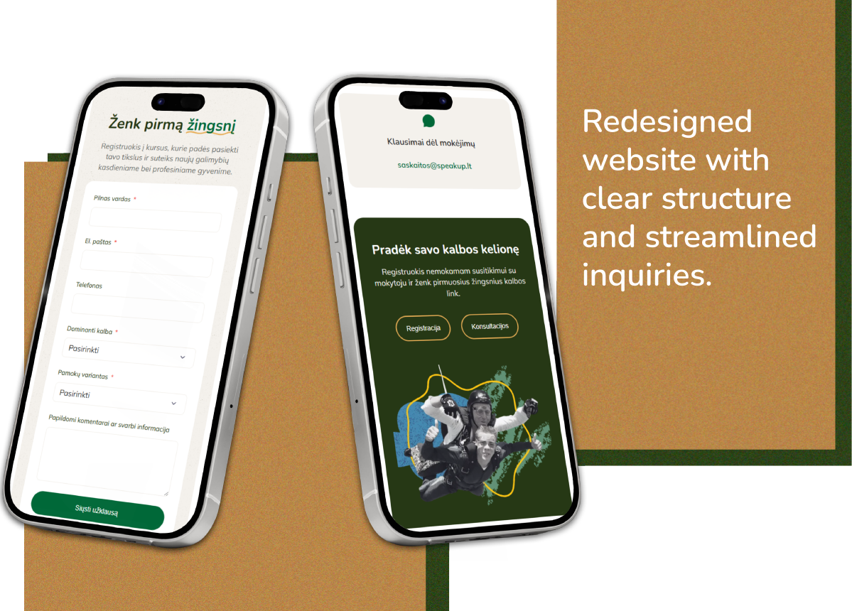 For language courses – the company’s core service – we created a dedicated inquiry form on a separate page. For corporate training, exam preparation (including IELTS), and consultations, we added individual forms at the bottom of each service page. This approach made it easier to submit inquiries and helped direct them more accurately based on user intent.